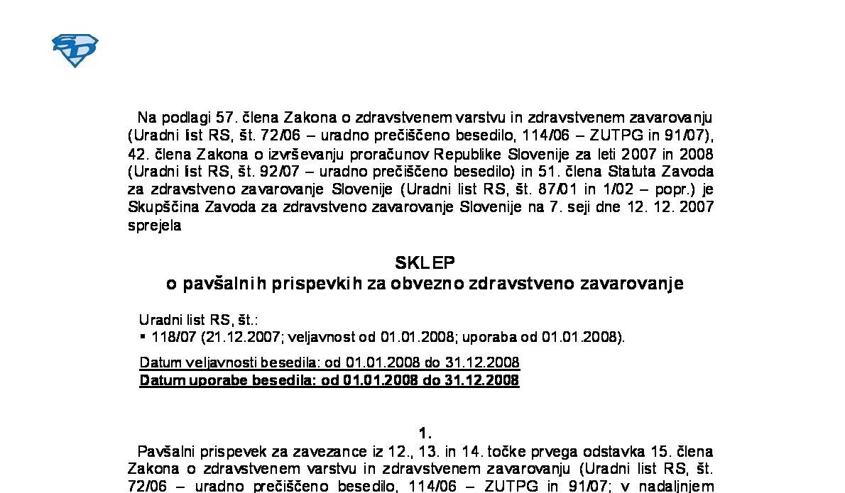 Skladno s 46. členom ZZVZZ-K Sklep preneha veljati 31.12.2008.