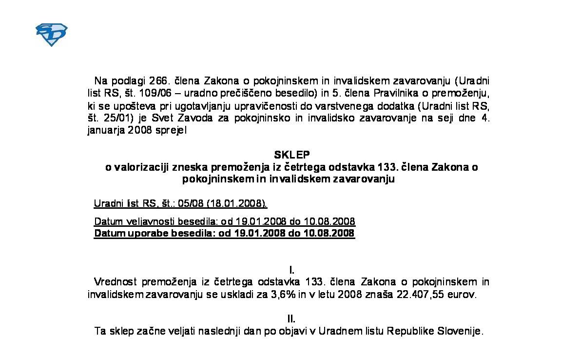 | Sklep o določitvi prispevkov za posebne primere zavarovanja (NUPB - neuradno prečiščeno besedilo) | 01.04.2025 | 12.03.2025 | ||