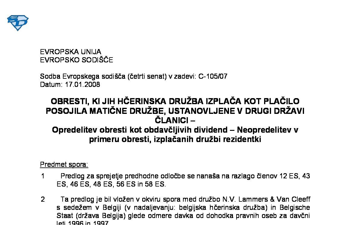 SKUPNI SISTEM OBDAVČITVE MATIČNIH DRUŽB IN ODVISNIH DRUŽB IZ RAZLIČNIH DRŽAV ČLANIC – Oprostitev DDPO od dividend, ki jih odvisna družba nerezidentka razdeli matični družbi rezidentki (C-228/24) 03.04.2025 07.04.2025