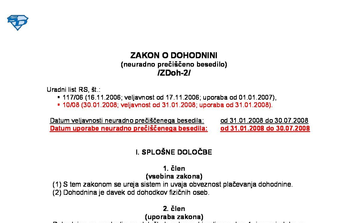 ZAKON O DOHODNINI (ZDoh-2 - neuradno prečiščeno besedilo) 01.01.2024 31.12.2024 03.01.2024