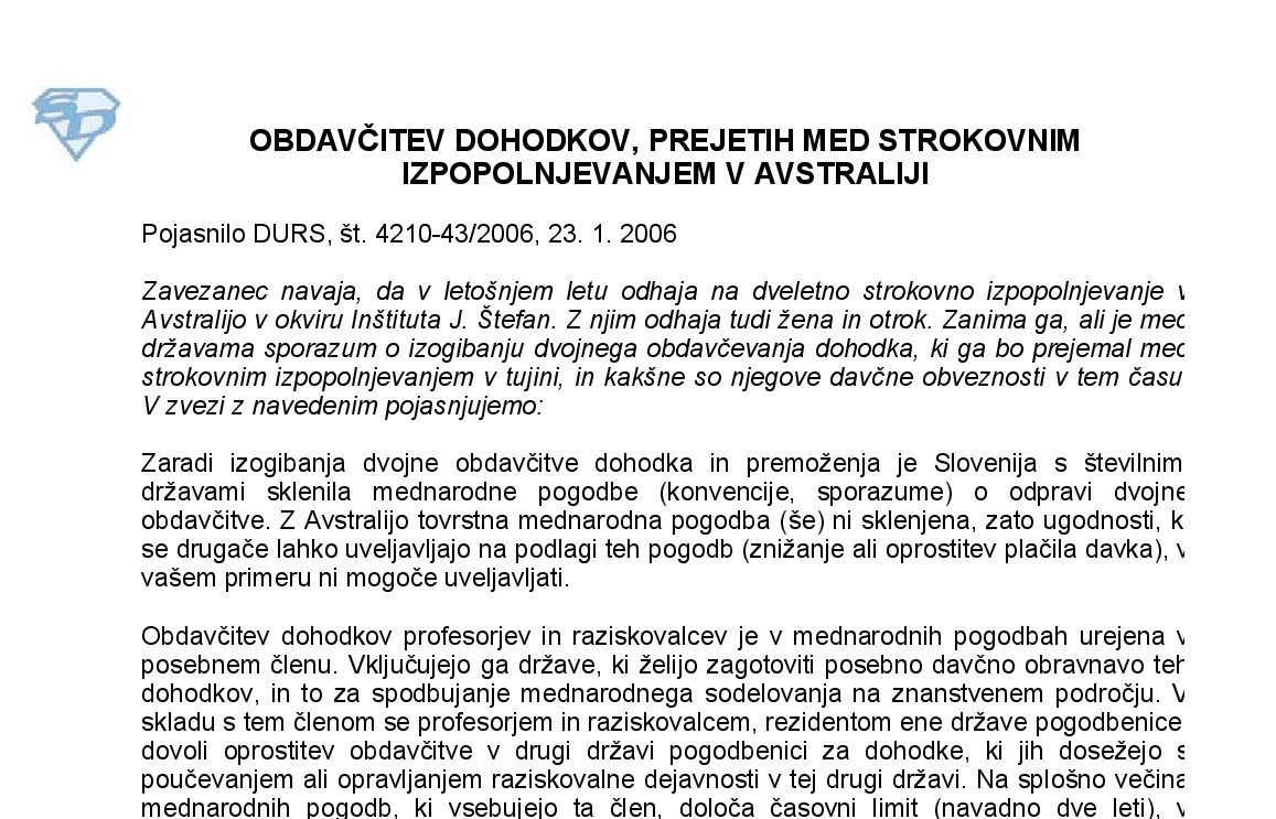 DOHODKI IZ ZAPOSLITVE – Davčna obravnava dohodkov delavcev, ki so napoteni na delo v tujino (podrobnejši opis, 14. izdaja) 14.01.2026
