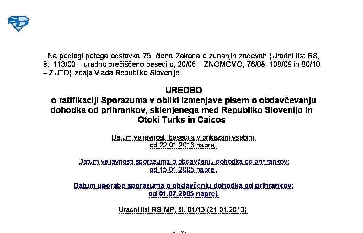 Prvotno objavljen sporazum v tej spletni podatkovni bazi z dne 25.03.2008, ki se je na podlagi obvestila MF uporabljal začasno, najdete v prilogi. OTOKI TURKS IN CAICOS (začasno).pdf