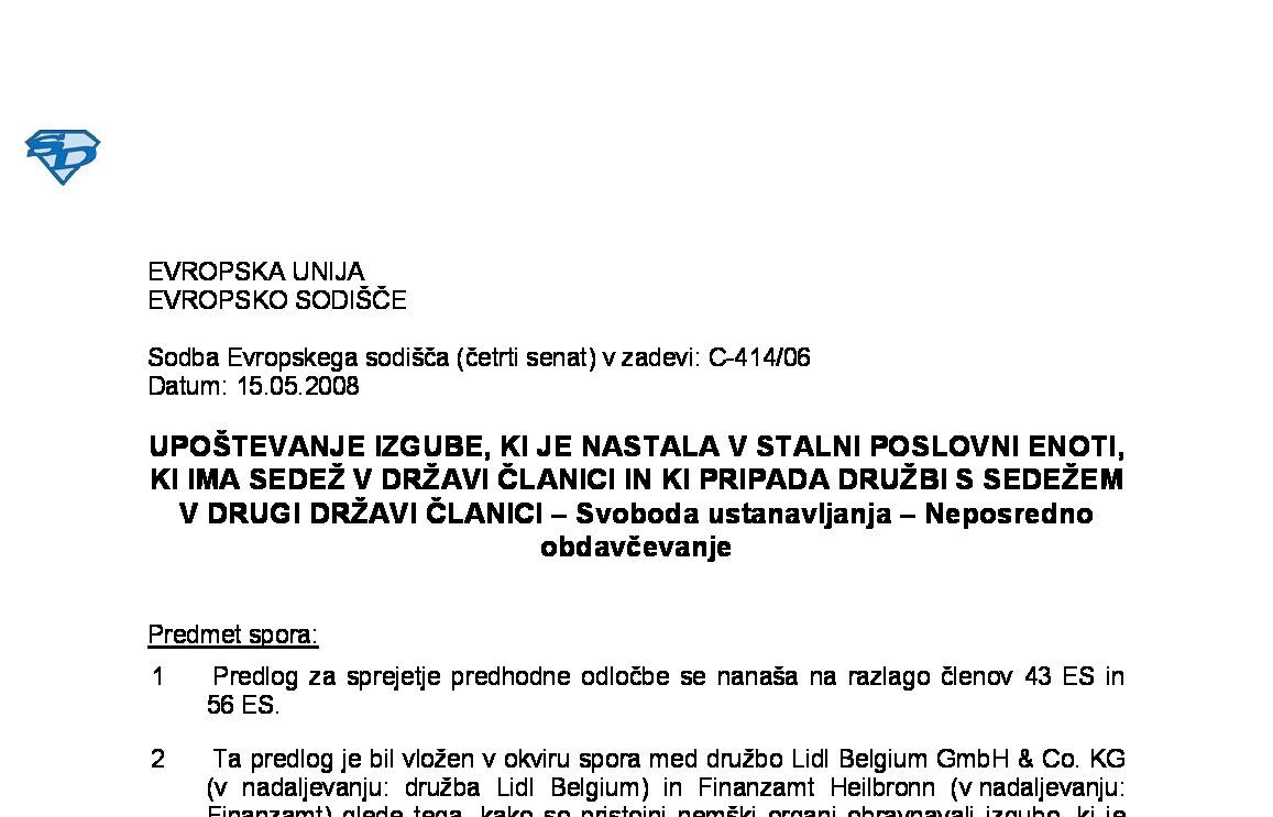 SKUPNI SISTEM OBDAVČITVE MATIČNIH DRUŽB IN ODVISNIH DRUŽB IZ RAZLIČNIH DRŽAV ČLANIC – Oprostitev DDPO od dividend, ki jih odvisna družba nerezidentka razdeli matični družbi rezidentki (C-228/24) 03.04.2025 07.04.2025