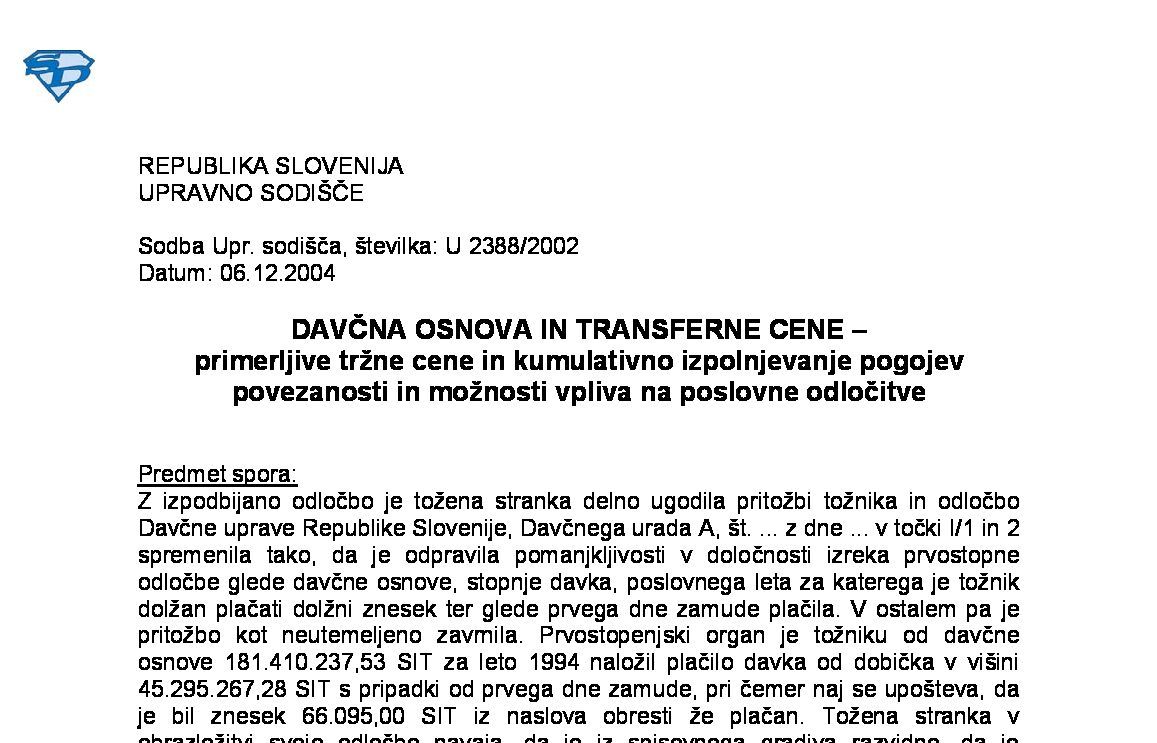 DDPO IN PREKLUZIJA DOKAZOV – Davčno priznan odhodek – Rezervacije – Prikrito izplačilo dobička (I U 652/2021-12) 15.07.2024 30.01.2025