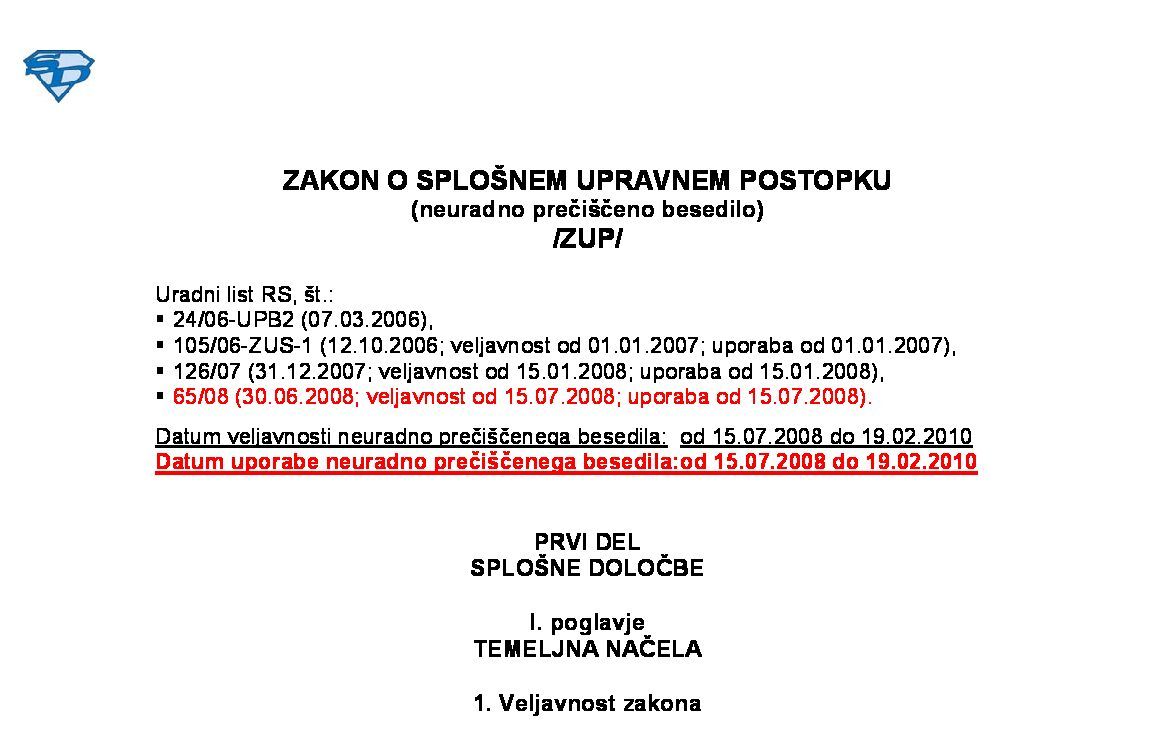 ZAKON O SPLOŠNEM UPRAVNEM POSTOPKU (ZUP - neuradno prečiščeno besedilo) 06.02.2026 [!] 10.11.2025