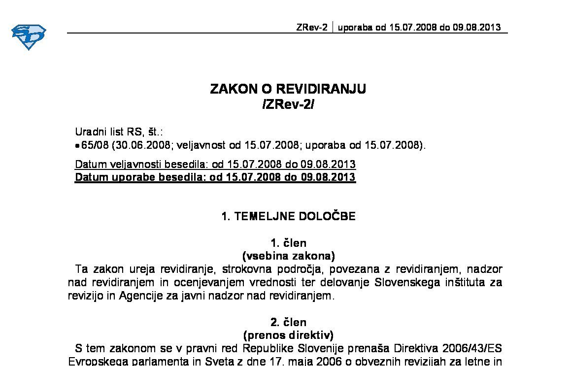 ZAKON O REVIDIRANJU (ZRev-2 - neuradno prečiščeno besedilo) 19.10.2024 [!] 08.10.2024