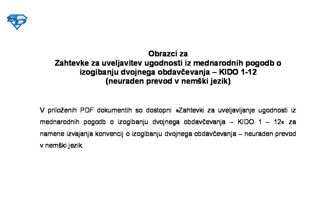 Obrazci za zahtevke za uveljavitev ugodnosti iz mednarodnih pogodb o izogibanju dvojnega obdavčevanja - KIDO 1-12 (ITA verzija spl. strani DURS-a) 01.01.2007 23.06.2008