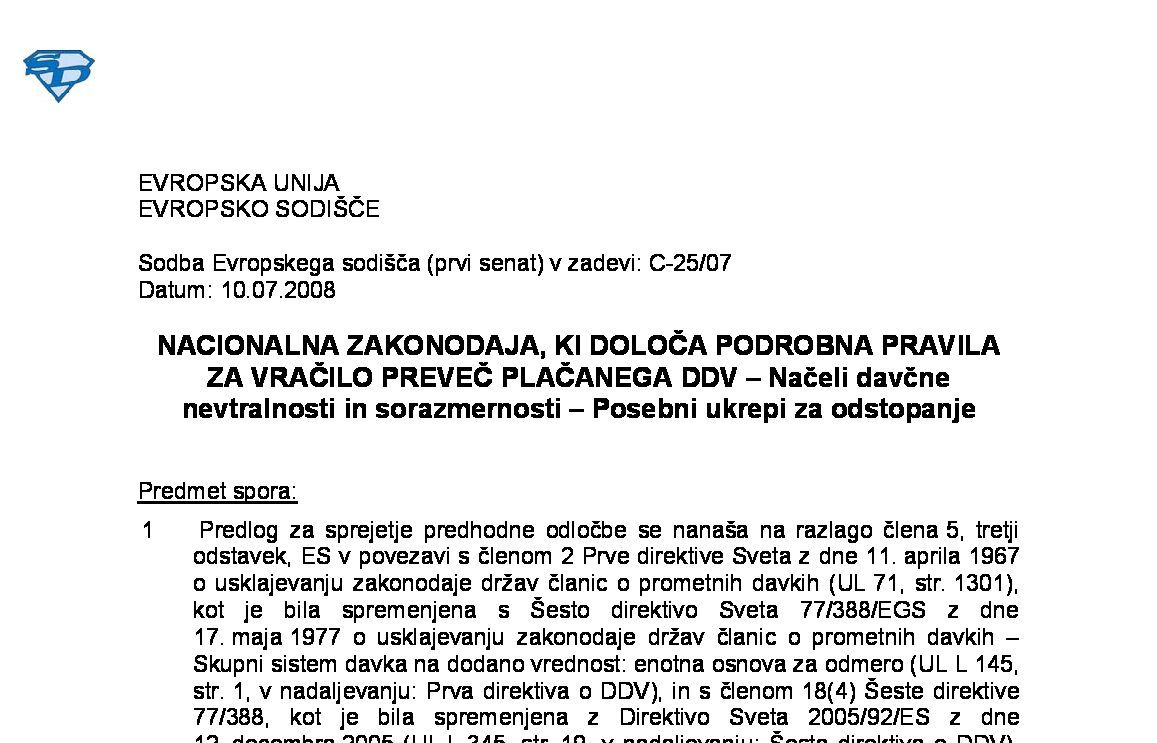 OPROSTITEV V ZVEZI Z DAJANJEM KREDITOV – OPROSTITEV V ZVEZI S FINANČNIMI TRANSAKCIJAMI – IZTERJAVA DOLGOV – Faktoring s prodajo terjatev – Faktoring z zastavno pravico (C-232/24) 23.10.2025 28.10.2025