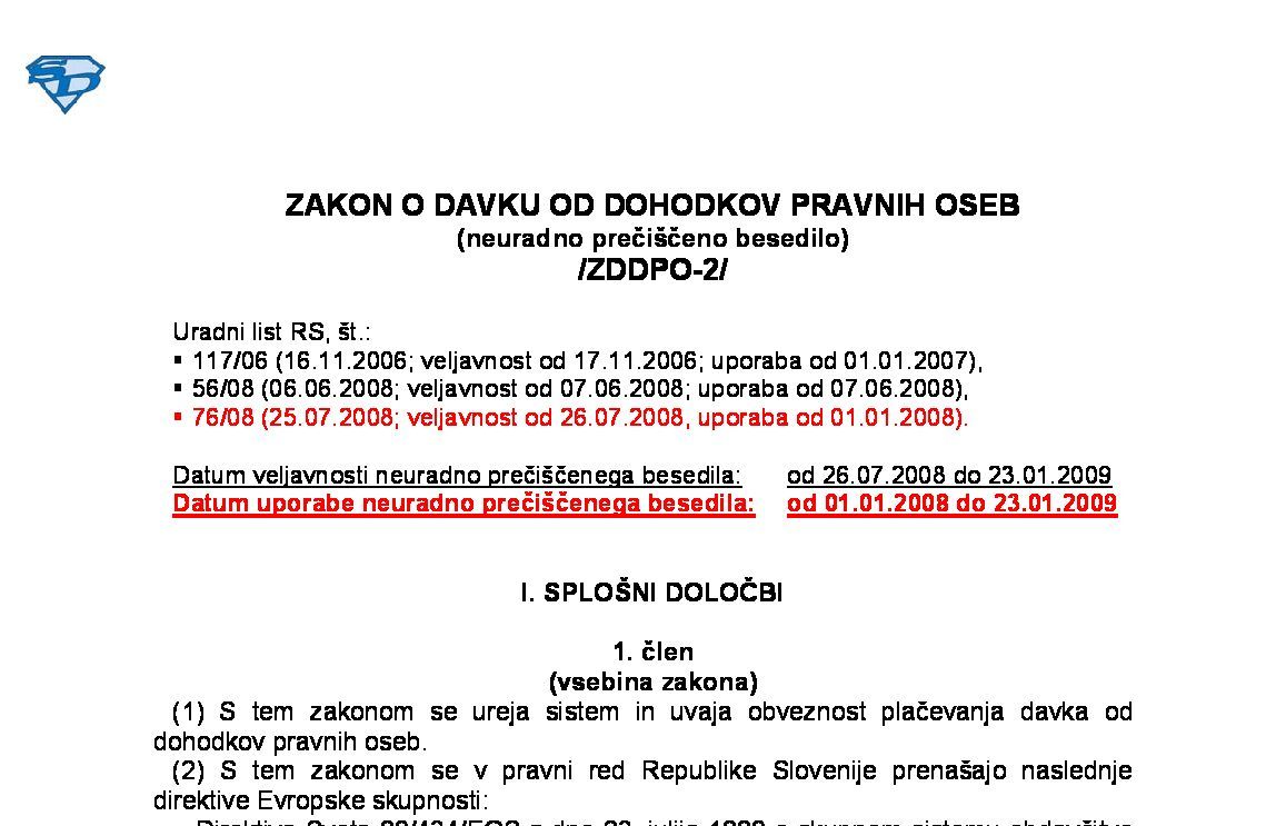 ZAKON O DAVKU OD DOHODKOV PRAVNIH OSEB (ZDDPO-2 - neuradno prečiščeno besedilo) 01.01.2026 [!] 07.11.2025