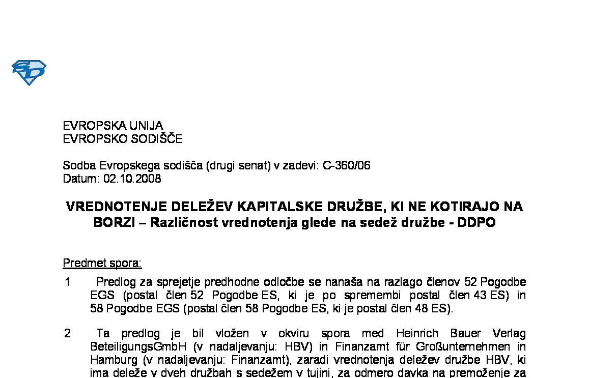 SKUPNI SISTEM OBDAVČITVE ZA ZDRUŽITVE, DELITVE, DELNE DELITVE, PRENOSE SREDSTEV IZ ZAMENJAVE KAPITALSKIH DELEŽEV – Delna delitev – Neobstoje zmanjšanja kapitala (C-318/22) 16.11.2023 18.04.2025