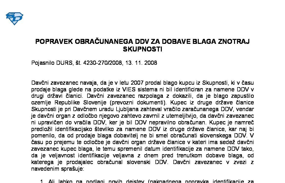 Kratka vprašanja in odgovori – evidenci obračunanega DDV in odbitka DDV ter predizpolnitev obračuna DDV (16. izdaja) 01.12.2025 02.12.2025