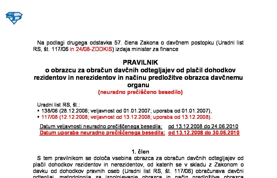 Pravilnik o obrazcih za obračun prispevkov za socialno varnost (neuradno prečiščeno besedilo - NUPB) 01.07.2025 27.05.2025