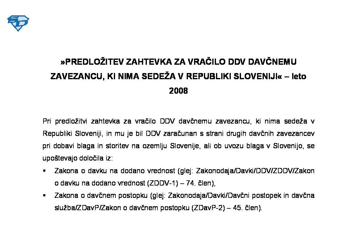 PREDLOŽITEV ZAHTEVKA ZA VRAČILO DDV DAVČNEMU ZAVEZANCU S SEDEŽEM V SLOVENIJI, KI IMA PRAVICO DO VRAČILA V DRUGI DRŽAVI ČLANICI - leto 2024 30.01.2025