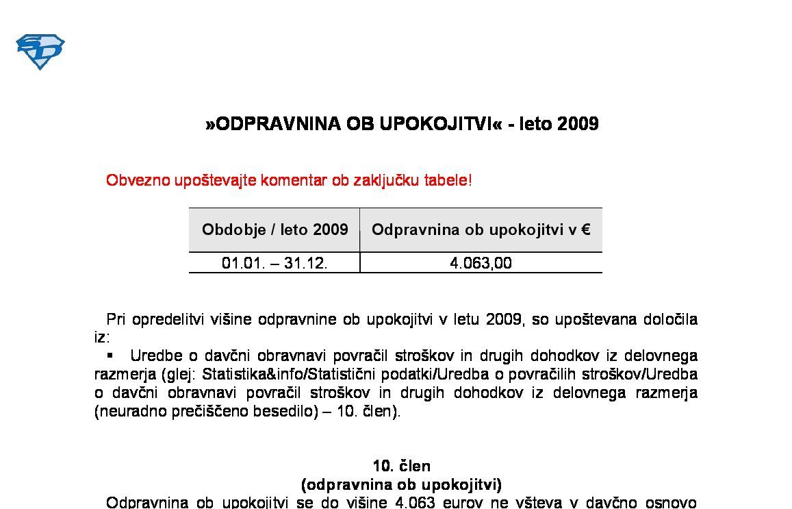 ODPRAVNINA OB UPOKOJITVI - leto 2025 28.02.2025