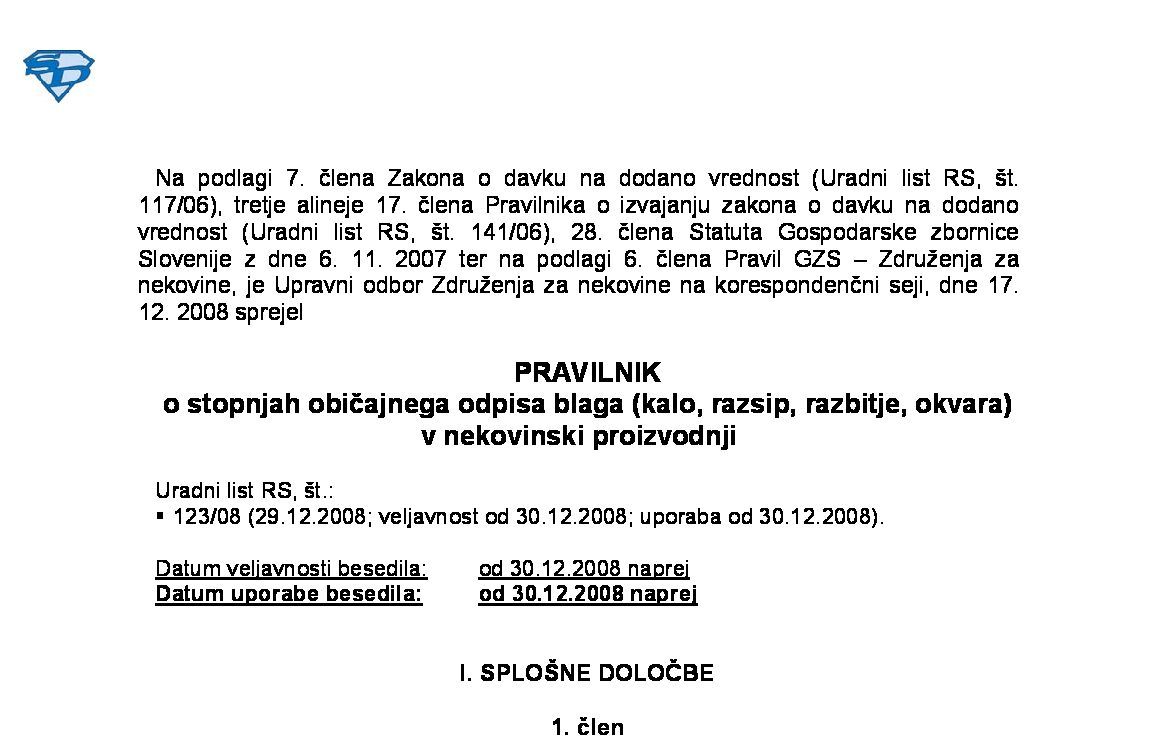 Pravilnik o stopnjah običajnega odpisa, primanjkljaja blaga in remitende (kalo, razbitje in okvara nosilcev besede, slike, zvoka) - GZS-ZKGM (neuradno prečiščeno besedilo) 01.01.2009 17.03.2009
