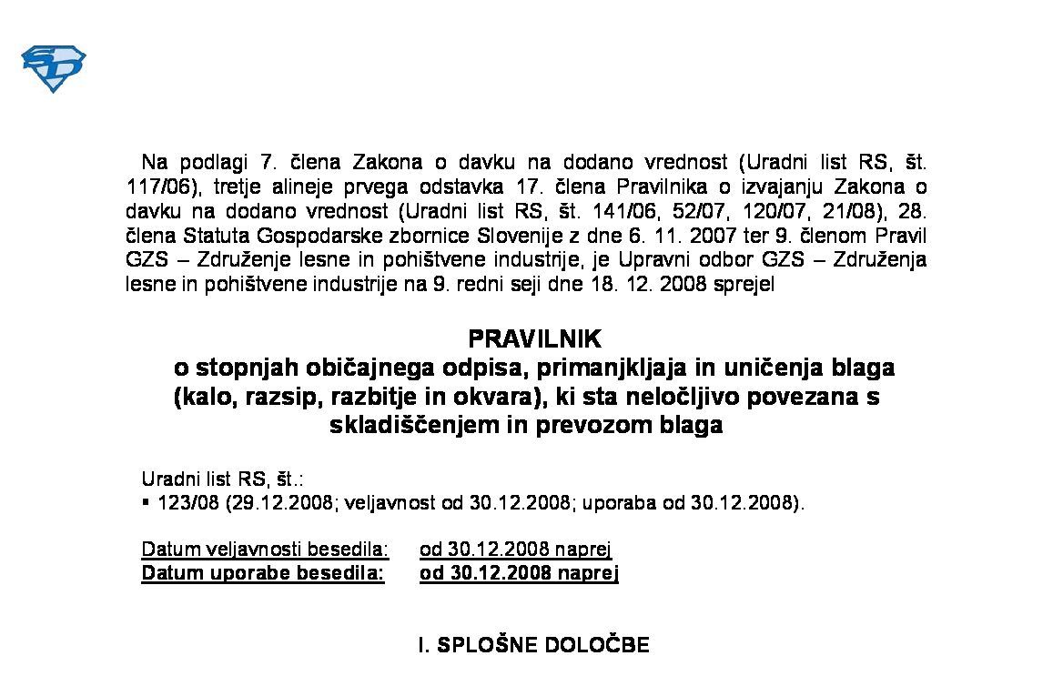 Pravilnik o stopnjah običajnega odpisa, primanjkljaja blaga in remitende (kalo, razbitje in okvara nosilcev besede, slike, zvoka) - GZS-ZKGM (neuradno prečiščeno besedilo) 01.01.2009 17.03.2009