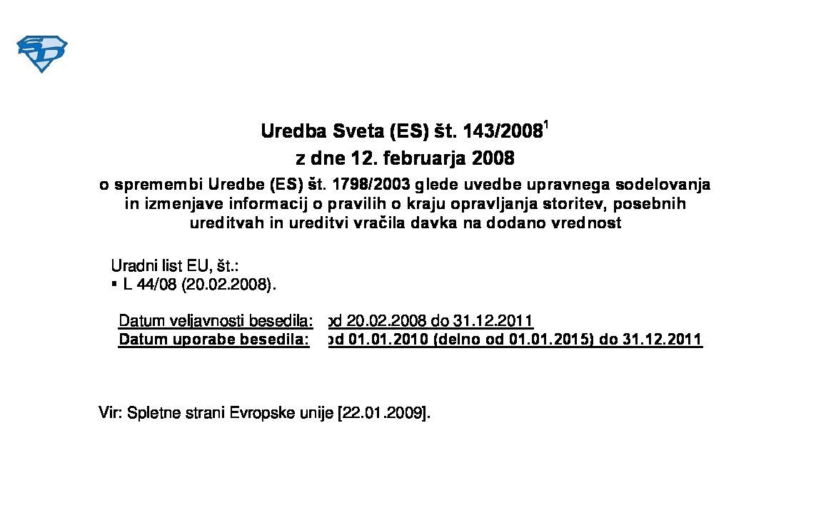 Uredba Sveta (ES) št. 143/2008 z dne 12. februarja 2008 o spremembi Uredbe (ES) št. 1798/2003 glede uvedbe upravnega sodelovanja in izmenjave informacij o pravilih o kraju opravljanja storitev, posebnih ureditvah in ureditvi vračila DDV.pdf