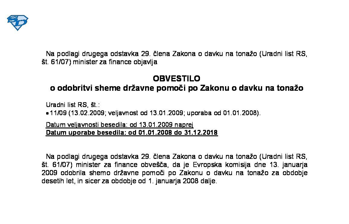 NAZNANILO o odobritvi sheme državne pomoči po Zakonu o davku na tonažo 01.01.2019 31.12.2028 03.01.2019