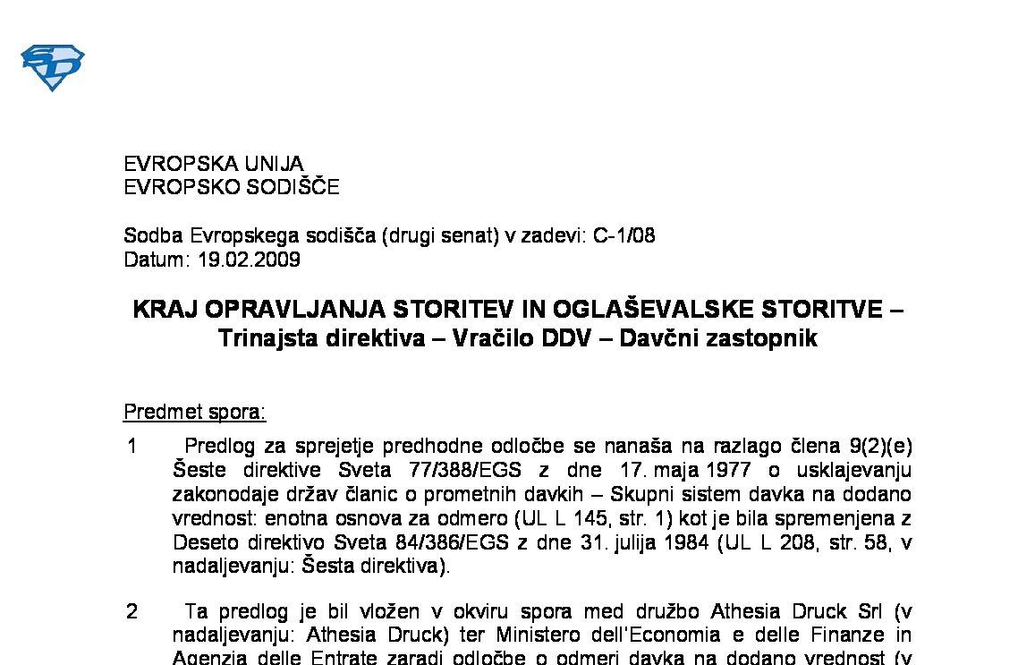 BREZPLAČNA PRAVNA POMOČ, KI JO ODVETNIK ZAGOTOVI STRANKI V SODNEM POSTOPKU – PLAČILO NAGRADE TEGA ODVETNIKA S STRANI PORAŽENE NASPROTNE STRANKE – Transakcije, ki so predmet DDV – Opravljanje storitev za plačilo (C-744/23) 23.10.2025 29.10.2025