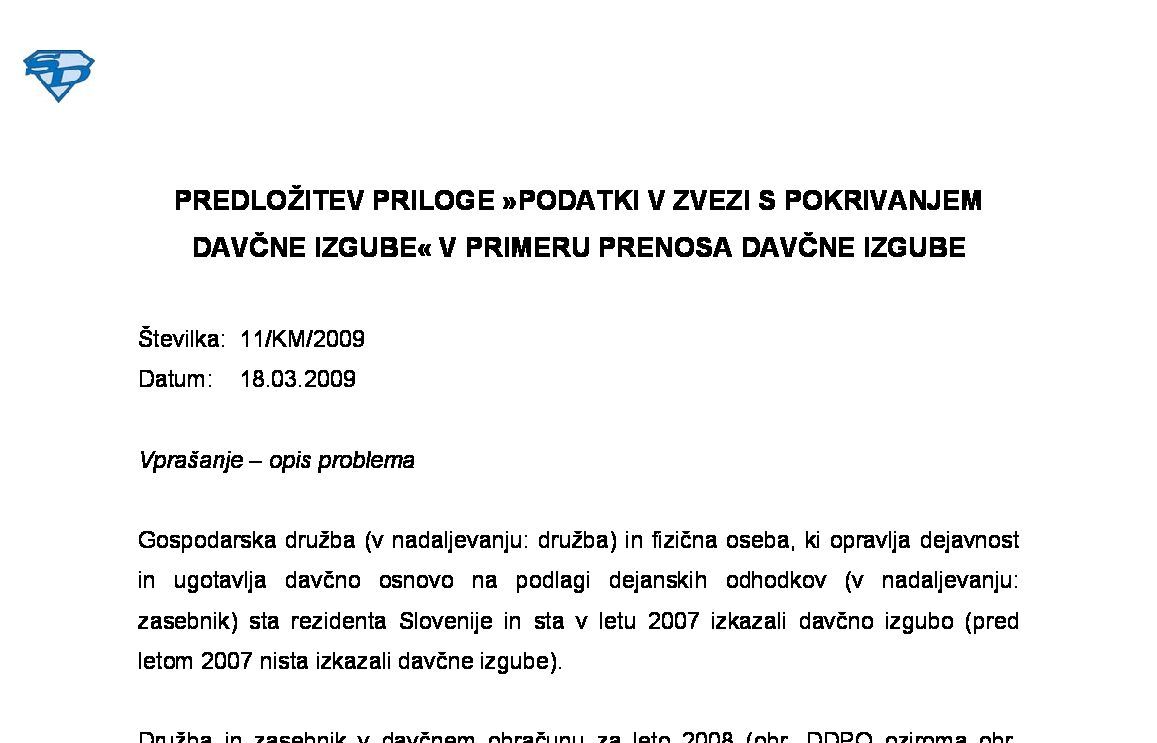 DDPO in DOHODNINA IZ DEJAVNOSTI Z UPOŠTEVANJEM DEJANSKIH ODHODKOV – Nepokrita davčna izguba iz preteklih let – Davčni obračun priloga »Podatki v zvezi s pokrivanjem davčne izgube« 28.10.2025 04.11.2025