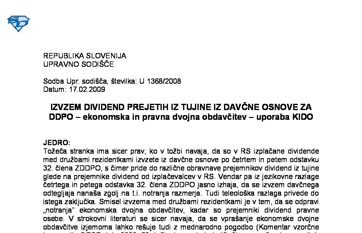 DDPO IN PREKLUZIJA DOKAZOV – Davčno priznan odhodek – Rezervacije – Prikrito izplačilo dobička (I U 652/2021-12) 15.07.2024 30.01.2025