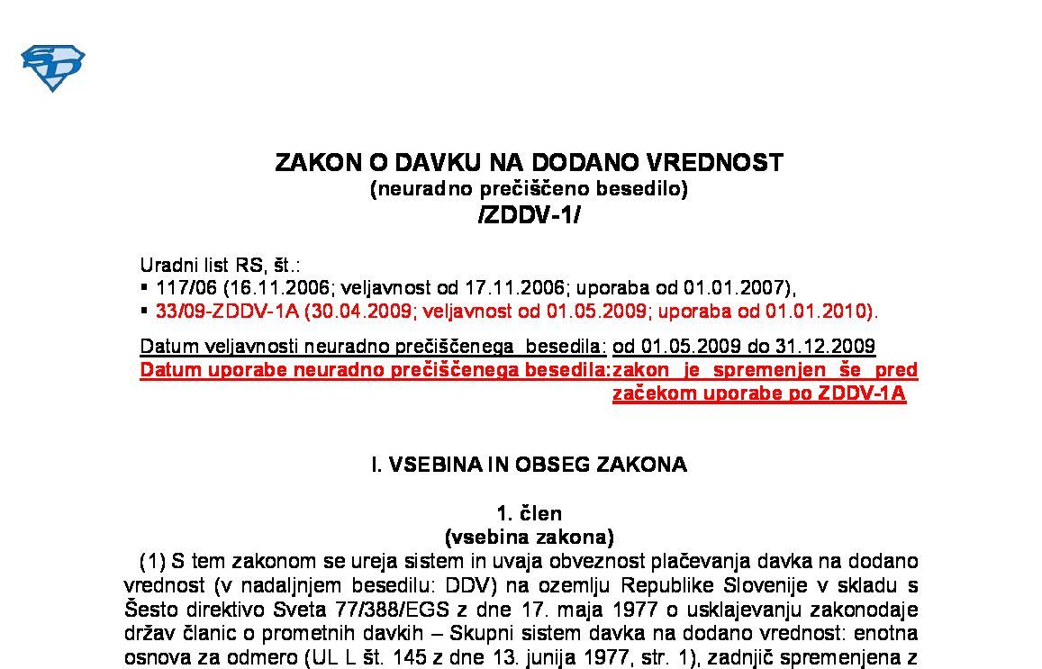 ZAKON O DAVKU NA DODANO VREDNOST (ZDDV-1 - neuradno prečiščeno besedilo) 06.12.2023 [!] 31.12.2023 05.12.2023