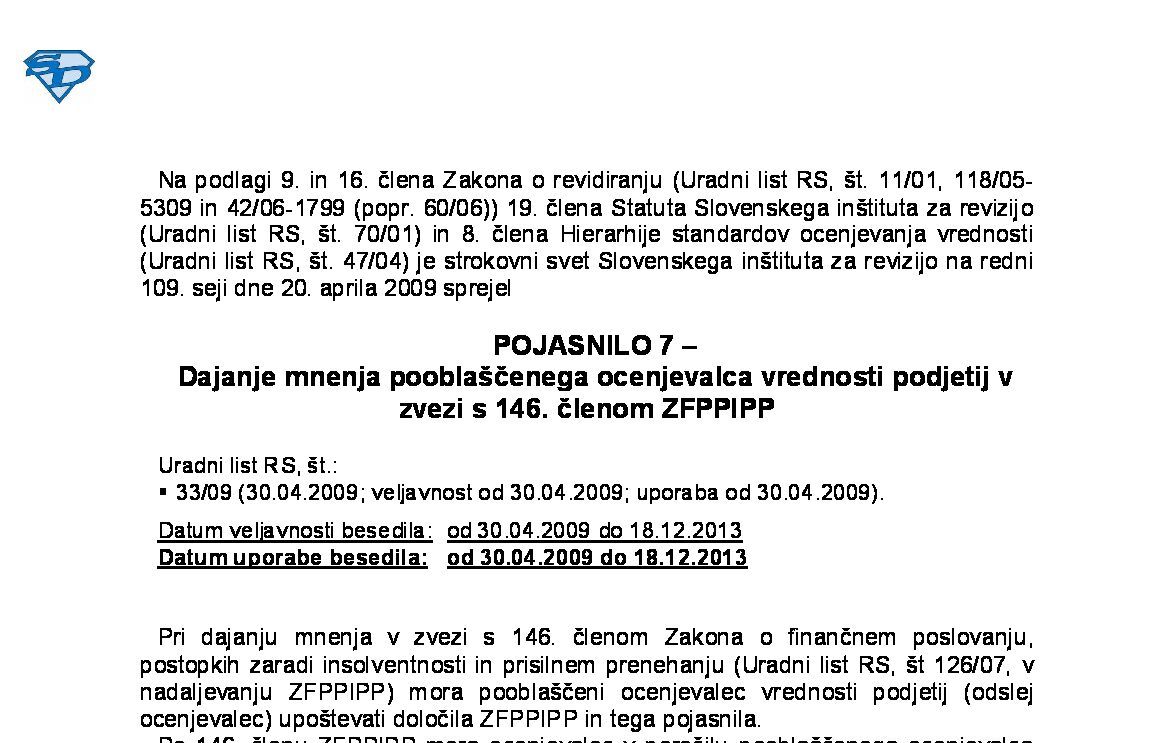 Članek nima posebnosti! Priloga A - Zgled pritrdilnega mnenja pooblaščenega ocenjevalca vrednosti podjetij v zvezi s 146. členom ZFPPIPP.pdf