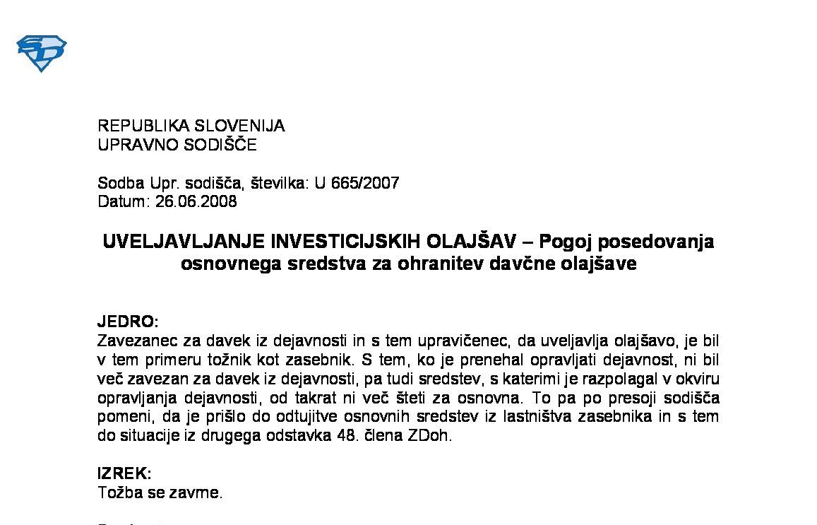 PREJEM POSLOVNEGA DELEŽA V DRUŽBI OB ANGAŽIRANJU PRI SANACIJI DRUŽBE – Darilo, ki se obdavčuje po ZDDD, ali dohodek obdavčen po ZDoh-2 (I U 1495/2022-13) 20.11.2024 10.07.2025