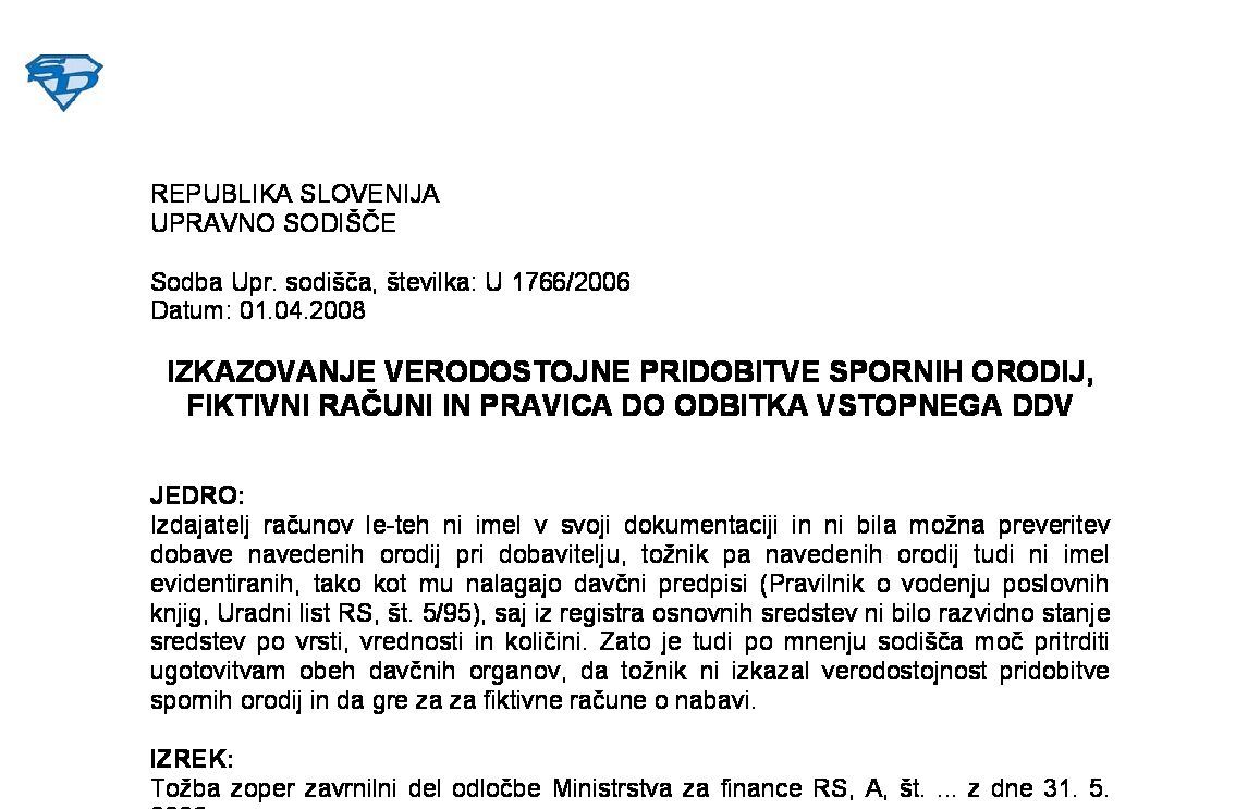 IZPOLNJEVANJE POGOJEV ZA DOBAVO BLAGA ZNOTRAJ UNIJE, OPROŠČENO PLAČILA DDV NA PODLAGI 46. ČLENA ZDDV-1 – Nepopolne CMR listine (I U 1704/2021-38) 27.11.2024 15.10.2025