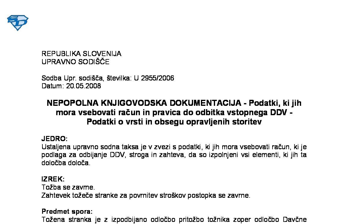 IZPOLNJEVANJE POGOJEV ZA DOBAVO BLAGA ZNOTRAJ UNIJE, OPROŠČENO PLAČILA DDV NA PODLAGI 46. ČLENA ZDDV-1 – Nepopolne CMR listine (I U 1704/2021-38) 27.11.2024 15.10.2025