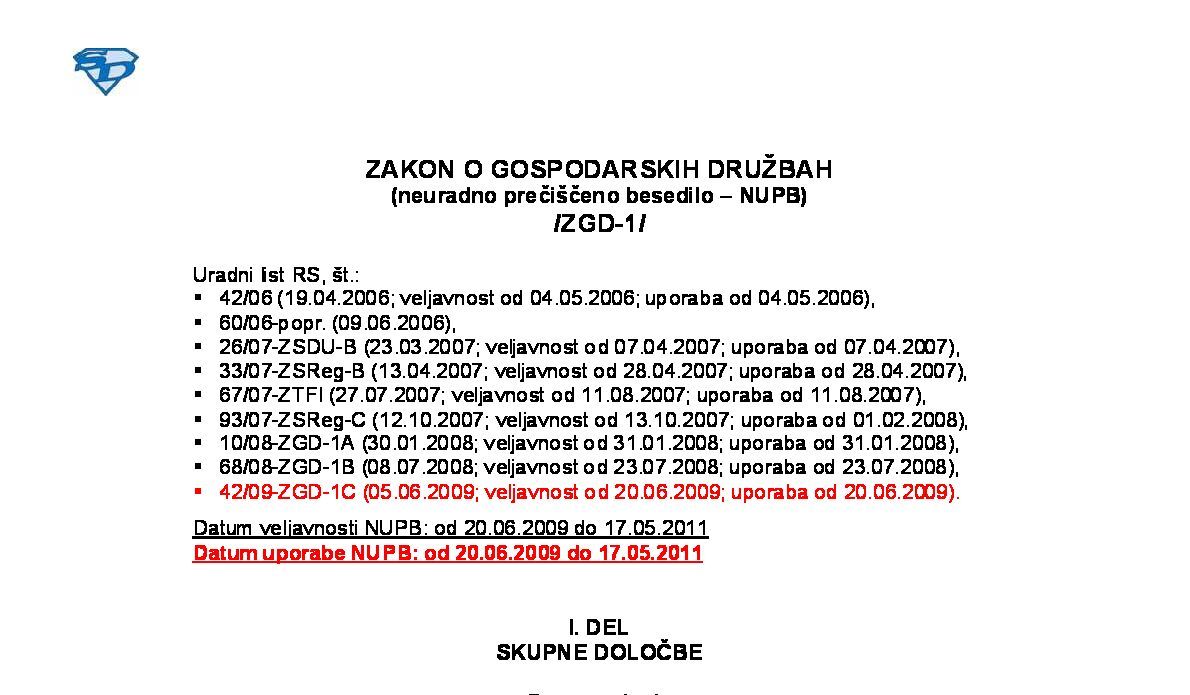 ZAKON O GOSPODARSKIH DRUŽBAH (ZGD-1 - neuradno prečiščeno besedilo) 17.11.2020 27.11.2020 11.12.2020