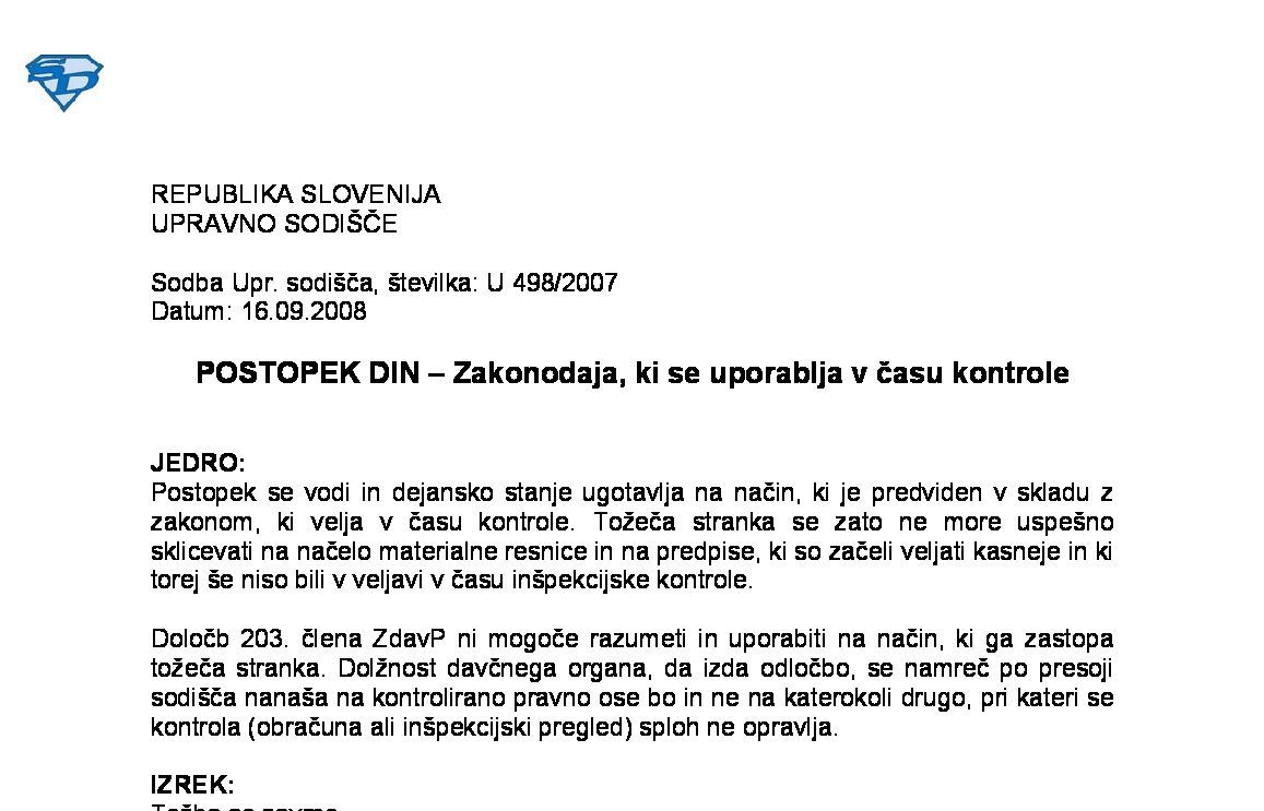 VRAČILO PLAČANIH DAJATEV PO DAVČNEM OBRAČUNU IZ POSTOPKA DIN (IV U 124/2022-15) 10.03.2025 12.09.2025