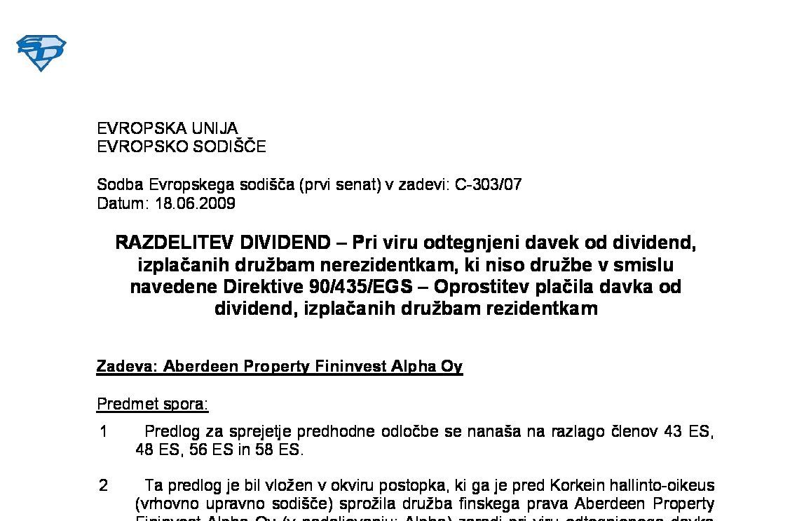 SKUPNI SISTEM OBDAVČITVE MATIČNIH DRUŽB IN ODVISNIH DRUŽB IZ RAZLIČNIH DRŽAV ČLANIC – Oprostitev DDPO od dividend, ki jih odvisna družba nerezidentka razdeli matični družbi rezidentki (C-228/24) 03.04.2025 07.04.2025