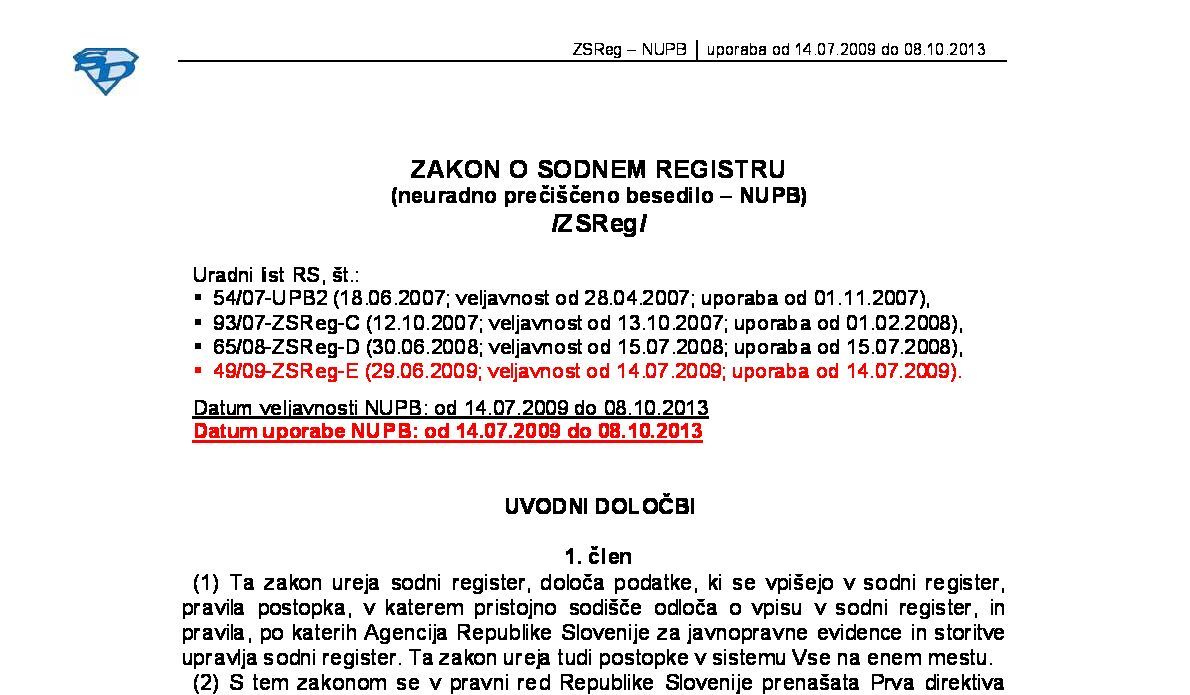 Uredba o sodnem registru (NUPB - neuradno prečiščeno besedilo) 10.08.2024 [!] 01.08.2024