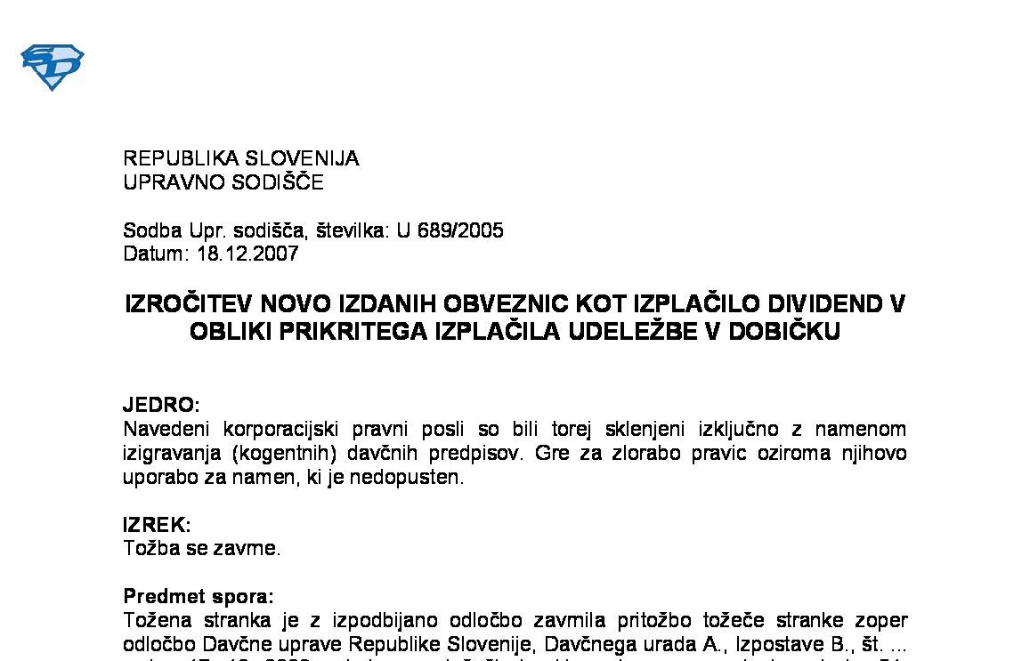 PREJEM POSLOVNEGA DELEŽA V DRUŽBI OB ANGAŽIRANJU PRI SANACIJI DRUŽBE – Darilo, ki se obdavčuje po ZDDD, ali dohodek obdavčen po ZDoh-2 (I U 1495/2022-13) 20.11.2024 10.07.2025