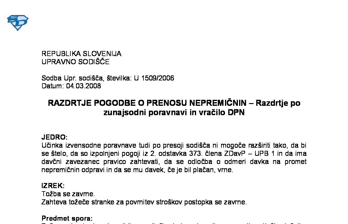 VRAČILO PLAČANIH DAJATEV PO DAVČNEM OBRAČUNU IZ POSTOPKA DIN (IV U 124/2022-15) 10.03.2025 12.09.2025
