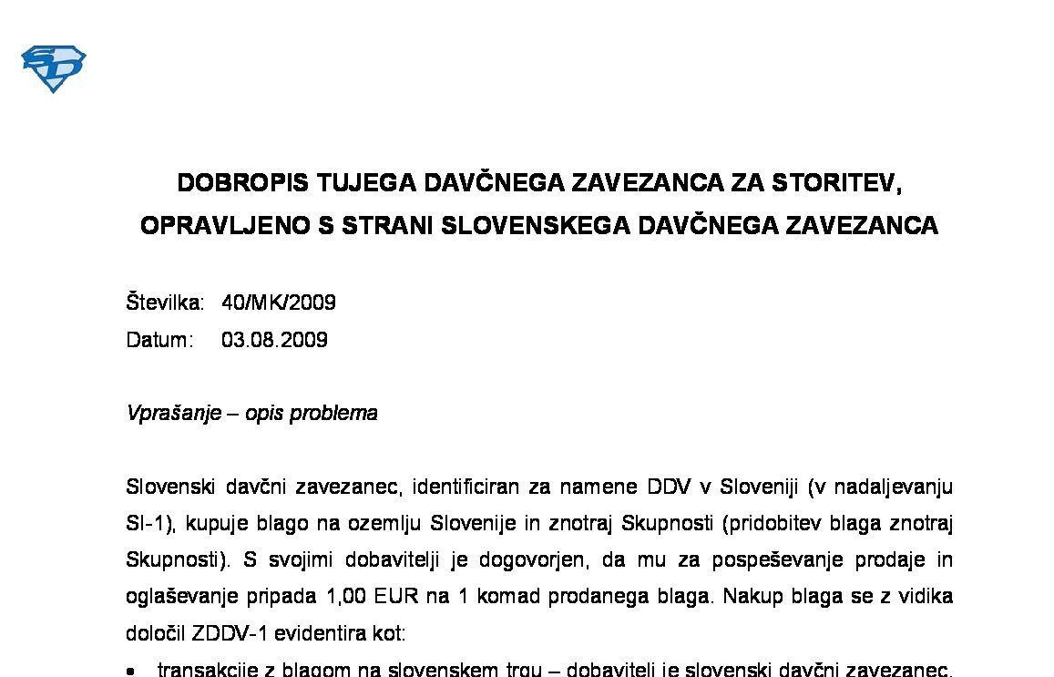 MALI DAVČNI ZAVEZANEC PREJME RAČUN TUJEGA DAVČNEGA ZAVEZANCA ZA PROVIZIJO PRI SPLETNIH REZERVACIJAH NASTANITEV – Določitev kraja opravljanja storitev in plačnika DDV v skladu z določili ZDDV-1 21.11.2025 21.11.2025
