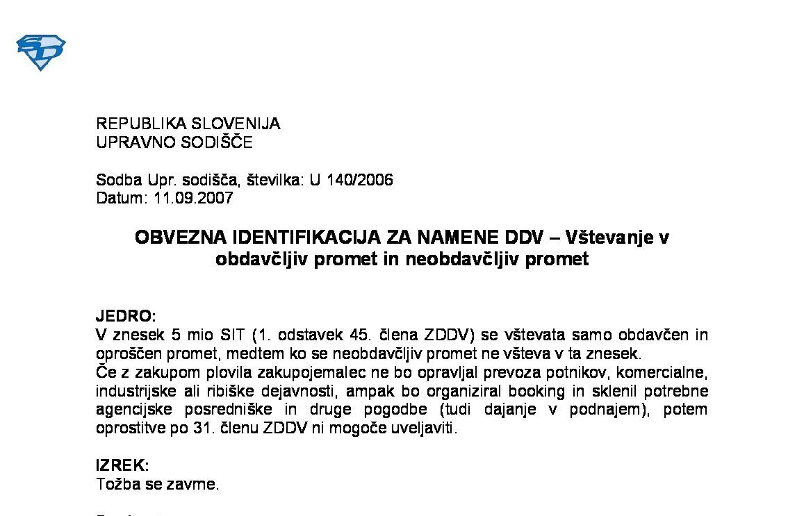 IZPOLNJEVANJE POGOJEV ZA DOBAVO BLAGA ZNOTRAJ UNIJE, OPROŠČENO PLAČILA DDV NA PODLAGI 46. ČLENA ZDDV-1 – Nepopolne CMR listine (I U 1704/2021-38) 27.11.2024 15.10.2025