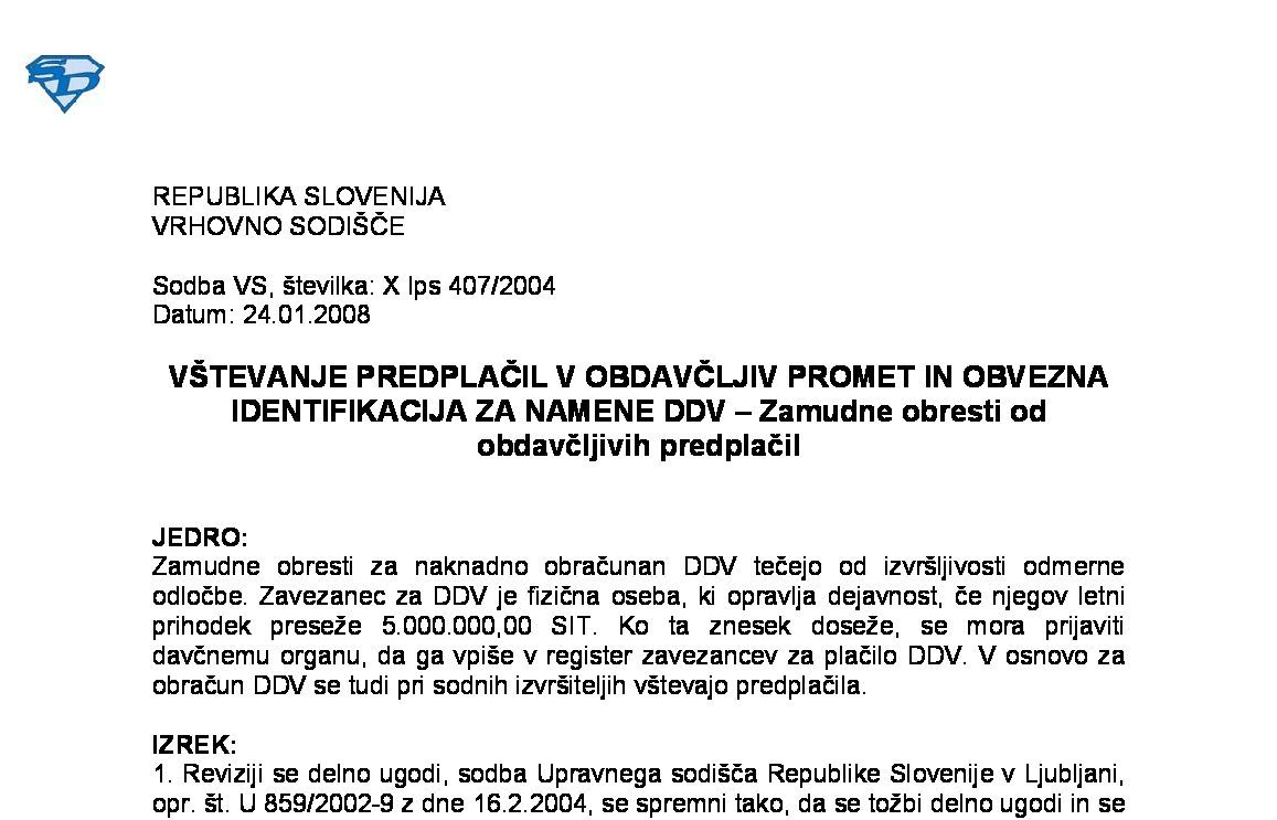 ODVETNIŠKA DEJAVNOST – Brezplačno zastopanje strank v postopkih pred sodišči – Obdavčitev prejetih povračil stroškov postopka (X Ips 8/2017) 13.09.2023 14.02.2024