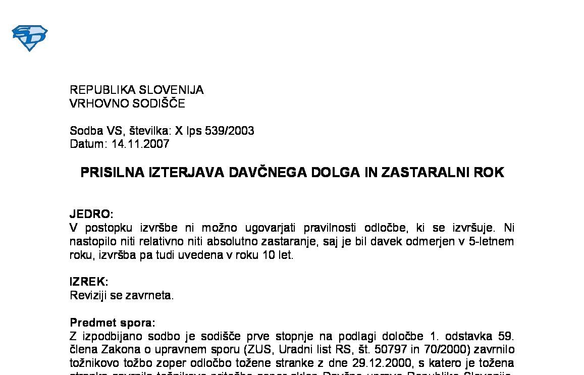 ODLOG UGOTAVLJANJA DAVČNE OBVEZNOSTI – Samoprijava (X Ips 31/2023) 02.10.2024 06.11.2024