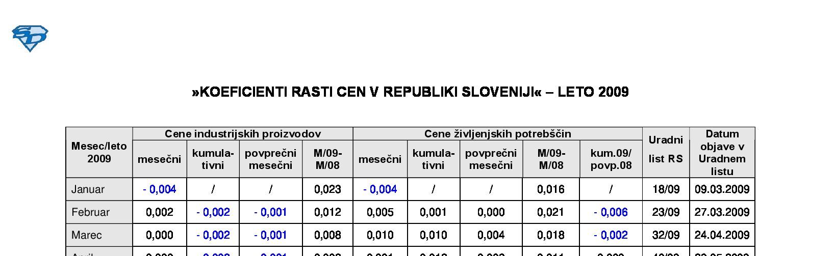 KOEFICIENTI RASTI CEN V REPUBLIKI SLOVENIJI – LETO 2023 29.01.2024