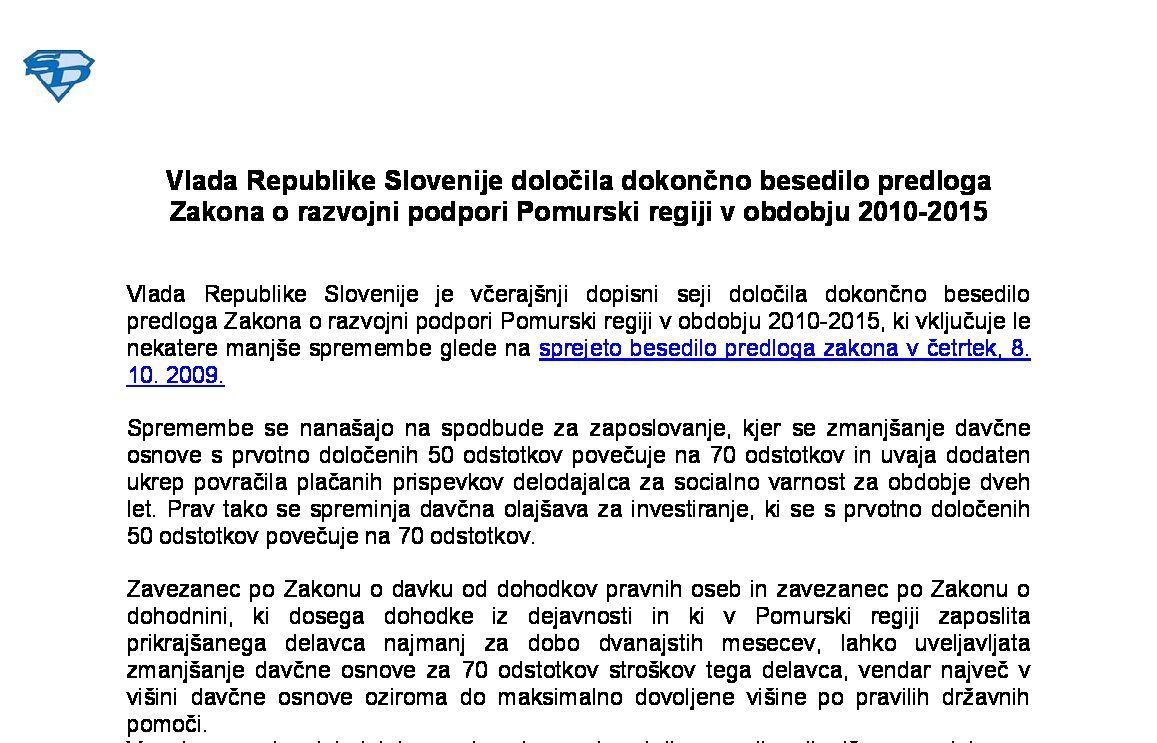Članek nima posebnosti! Predlog Zakona o razvojni podpori Pomurski regiji (predlog z dne 13.10.2009).doc