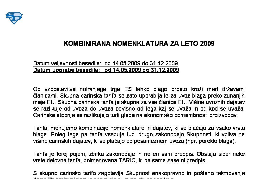 Kombinirana nomenklatura za leto 2025 01.01.2025 31.12.2025 05.11.2024