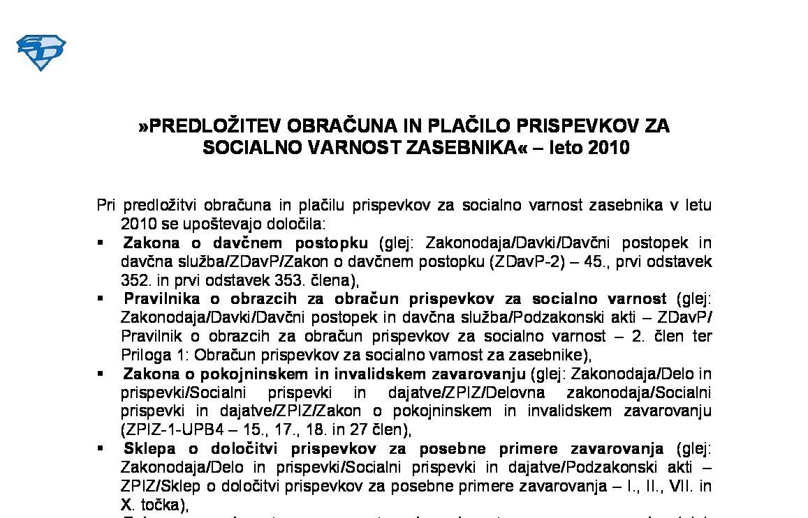PREDLOŽITEV OBRAČUNA IN PLAČILO PRISPEVKOV ZA SOCIALNO VARNOST ZASEBNIKA (PSV zasebniki - obračun OPSVZ) - leto 2025 (januar - junij 2025) 13.01.2025