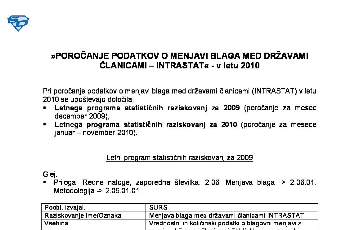 POROČANJE PODATKOV O MENJAVI BLAGA MED DRŽAVAMI ČLANICAMI - INTRASTAT - V letu 2025 22.01.2025
