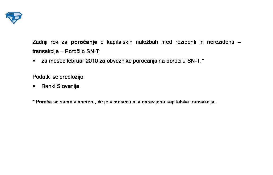 Poročanje Banki Slovenije - poročilo o prejetih in danih kreditih ter depozitih z nerezidenti - KRD 2026-10-20 00:00:00