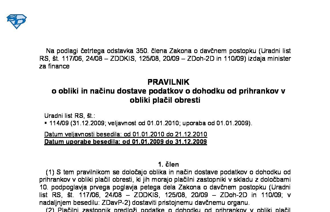 Pravilnik o obrazcih za napovedi za odmero akontacije dohodnine ter obrazcih za napovedi za odmero dohodnine od dohodka iz kapitala in dohodka iz oddajanja premoženja v najem (NUPB - neuradno prečiščeno besedilo) 20.12.2025 [!] 23.12.2025