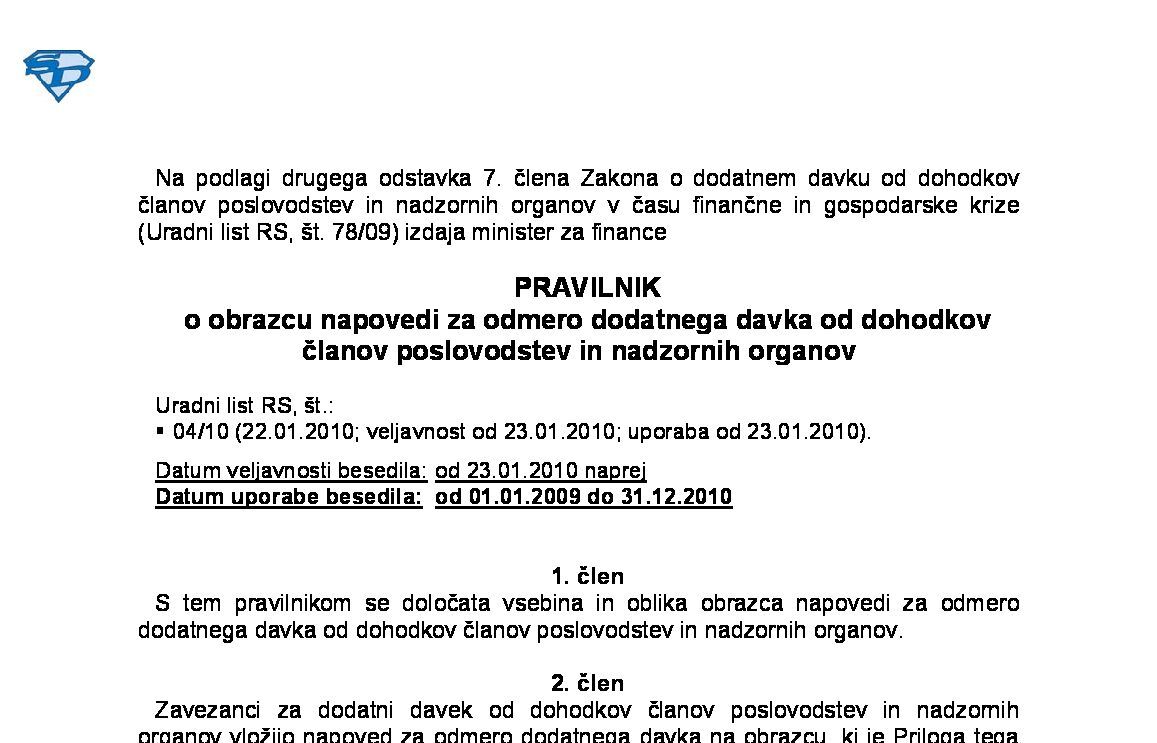 Čeprav je datum veljavnosti Pravilnika od 23.01.2010 naprej, se Pravilnik iz vsebinskega zornega kota uporablja za obdobje od 01.01.2009 do 31.12.2010 oz. skladno s posebnostjo glede uporabe po drugem, tretjem in četrtem odstavku 13. člena ZDDDČPNO. |