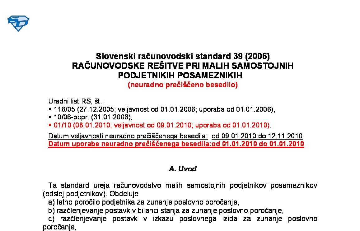 SRS 39 (2006) je z objavo popravka v UL RS, št. 90/10 z dne 12.11.2010 popravljen. Članek nima prilog!