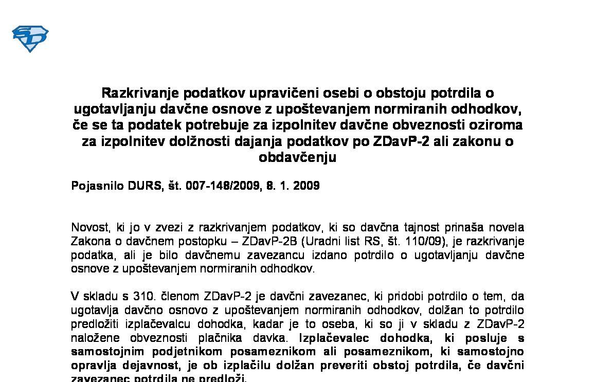 Članek nima posebnosti! Vloga za posredovanje podatkov o obstoju potrdila o ugotavljanju davčne osnove z upoštevanjem normiranih odhodkov.pdf
